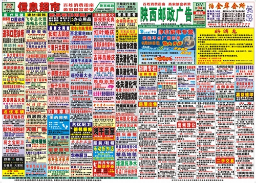 《郵政廣告》乾縣發(fā)行部:采用高級銅版紙全彩印刷,4開版面,逢周二、周五定期出版,覆蓋乾縣城內(nèi)生活區(qū)、居民區(qū)、商業(yè)區(qū)、辦公區(qū)、工業(yè)區(qū)、以及十五 ……