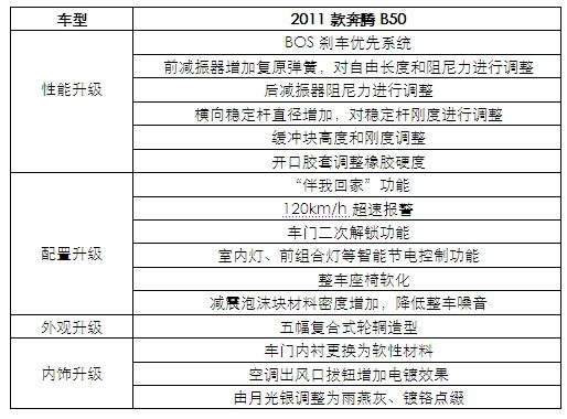 伴隨這16項重點(diǎn)商品升級,使得2011款奔騰B50無論在安全、性能、配置、外觀、內(nèi)飾等方面均有大幅提升,進(jìn)一步鞏固了其“全面越級車”的市場地位和標(biāo)桿形象。