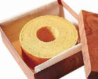 第一步:將蛋糕坯子切成兩部分,盡量平整均勻