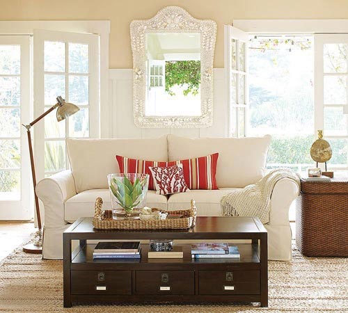 客廳墻壁上的鏡子組合,成為客廳時尚前衛(wèi)的元素。