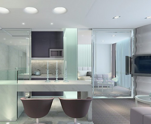 在玄關(guān)通往客廳的過道上安裝鏡子,地面的大理石磚鋪設(shè)鏡面,利用鏡子照射作用讓空間倍增。