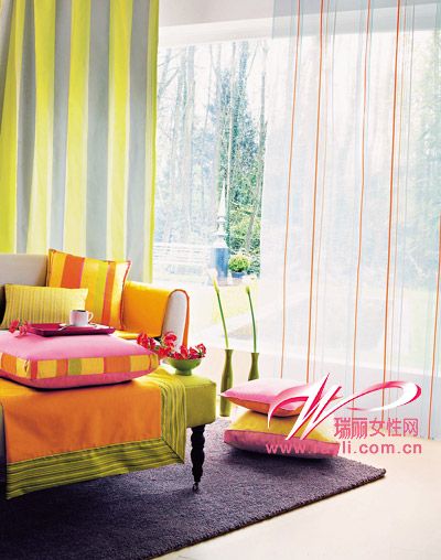 色塊組合形成條紋沙發(fā)上的多彩條紋圖案,是用粉紅、新綠、粉藍(lán)、深藍(lán)等不同顏色的布料組拼設(shè)計(jì)形成的,雖然沙發(fā)的款式看著古老,但亮麗的彩色條紋卻讓它變得很年輕。沙發(fā) 特瑞菲克