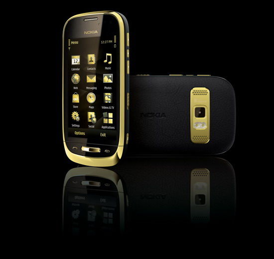 新浪科技訊 5月25日下午消息,諾基亞發(fā)布一款高端觸摸屏智能手機(jī)——諾基亞Oro(參數(shù) 報(bào)價(jià) 論壇 軟件)。這款定位奢華的使用Bridge of Weir皮革公司提供的小牛皮后蓋、18k鍍金和藍(lán)寶石材質(zhì)主屏幕鍵,并且是限量版產(chǎn)品。