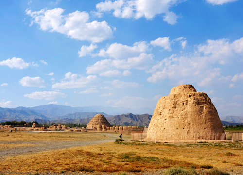 在中國(guó)早有三大龍脈之說,夏國(guó)主選在賀蘭山麓,肯定寄寓了對(duì)西夏王國(guó)輝煌的美好宏愿。再有賀蘭山可以阻擋部分西北風(fēng)的侵入,這也正是與國(guó)文化常常講“天時(shí)、地利”的含義如出一轍?勺钭屓艘姽值耐趿旰透綄俳ㄖ荚谫R蘭山的屏障之下,為什么失去附屬建筑的依靠配襯,依然默默矗立在風(fēng)雨之中呢?這神秘的王陵背后又隱含著多少關(guān)于西夏王朝的神秘蹤跡,西夏王朝的堅(jiān)守又預(yù)示著什么?這些都給后代人留下一個(gè)又一個(gè)的懸念。